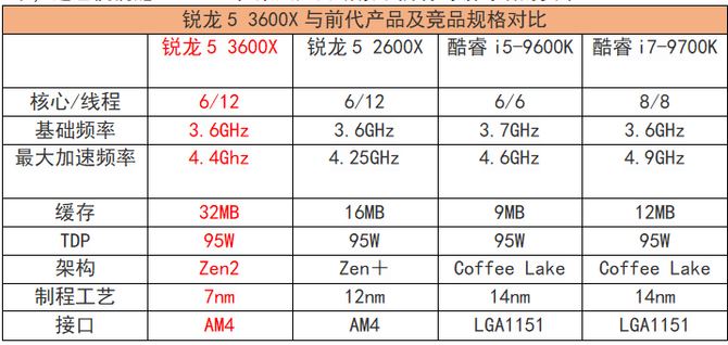 而和對位的產品英特爾酷睿i5-9600K相比,銳龍5 3600X則支持超線程技術,這也使銳龍5 3600X在某些應用場景下擁有跨級對戰的資本。