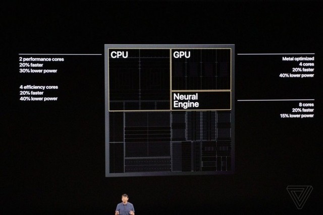 除了傳統的CPU和GPU方面,A13也升級了自己的“NPU”。當然,蘋果官方稱之為NeuralEngine,不過它與麒麟990系列的NPU同樣都是針對機器學習和神經網絡計算特殊設計的核心。蘋果宣稱,這次NeuralEngine的性能提升了20%,功耗降低15%。