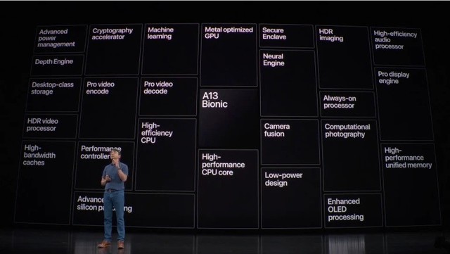 不過從這張參數圖來看,我們并不能有效的對比A13和麒麟990系列的差異,(除了是否支持5G之外)。所以我們還是來看看蘋果自己發布會上發布的性能圖。