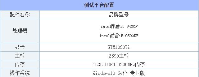 測試平臺電腦配置方面,我們分別使用了i5 9400F和i5-9600KF處理器進行測試,由于接口一致,主板均選用了Z390主板,其它硬件保持一致,顯卡方面我們選用了GTX1080Ti,配備DDR4 16G 3200Mhz內存,Windows10 專業版系統。