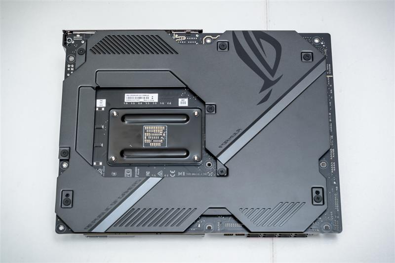 Formula這個系列的一大特點就是裝甲和水冷頭。主板的背面也有一張全覆蓋的背板。