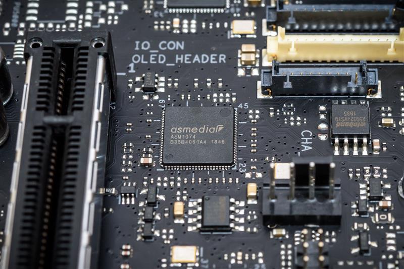 由于主板規格的關系,所以通道數很緊張,后窗USB 3.0就通過一顆ASM 1074芯片來轉接提供。