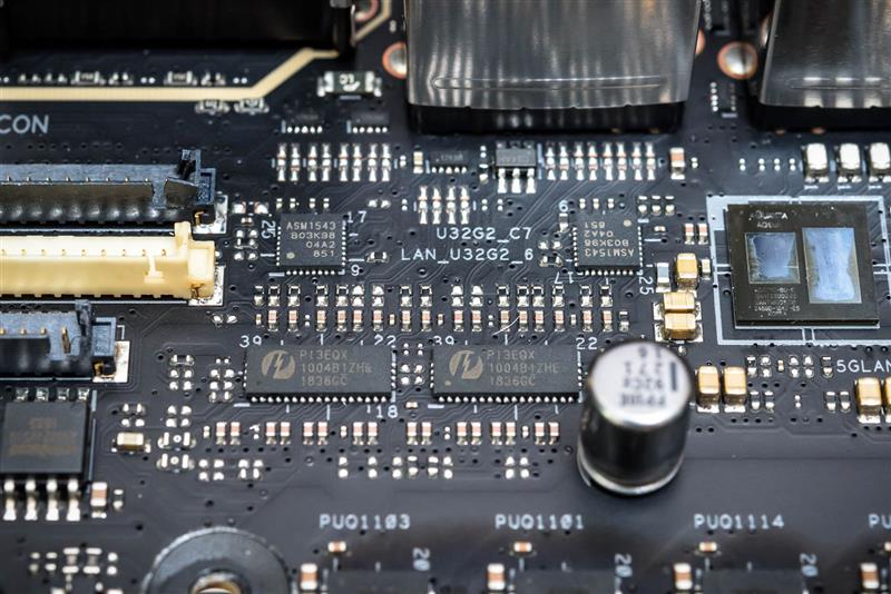 主板上比較特別的則是提供了一顆5G的高速網卡,型號是aquantia AQC-111C。理論上可以達到千兆網卡5倍的帶寬。但是同時需要家中網關也能達到相應的素質,使用門檻比較高。