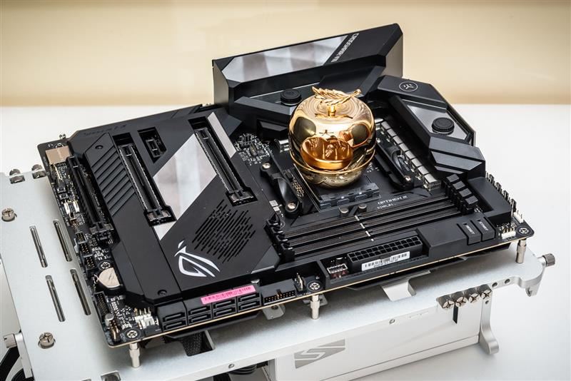 CPU供電的散熱部分為一個水冷頭,不上水的時候也可以作為正常的散熱片。