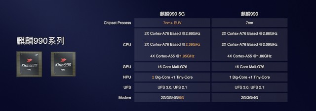 除此之外,麒麟990系列同樣支持最新的UFS 3.0存儲,與驍龍855+相同。