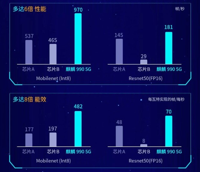 經過以上的各項對比,我們可以看到麒麟990 5G在性能超過驍龍855+的情況下,在芯片的能耗比上也比驍龍855+更勝一籌。甚至部分指標已經將驍龍855+甩在了身后,當然這與更先進的7nm+ EUV制程也有很大的關系。