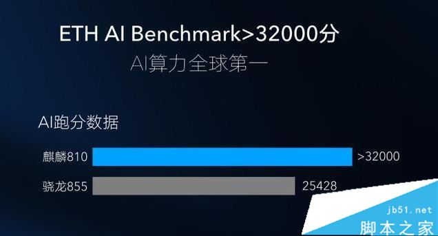 麒麟810 ETH AI Benchmark測(cè)試成績(jī)可以超過(guò)3.2萬(wàn)分,算力全球第一,領(lǐng)先驍龍855 26%之多。
