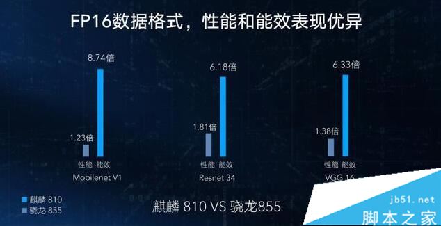 在16位數(shù)據(jù)格式下性能和能效表現(xiàn)方面,榮耀官方給出的數(shù)據(jù)驚人領(lǐng)先。麒麟810在部分項(xiàng)目的領(lǐng)先甚至高達(dá)7倍之多。