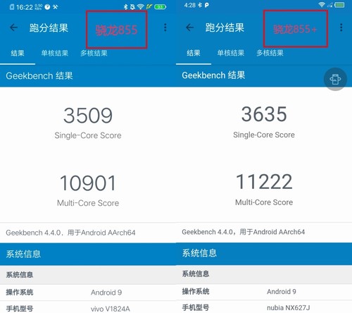 通過對比搭載驍龍855的iQOO與搭載驍龍855 Plus的努比亞Z20的Geekbench跑分可以看出,與驍龍855 3400-3500左右的分數相比,驍龍855 Plus的單核性能確實得到了一定提升。至于多核性能,二者基本持平,所得分數在允許的波動范圍之內。