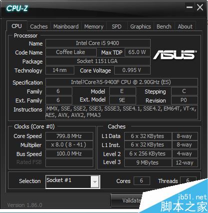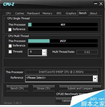 上圖是CPU-Z顯示的處理器信息,大家可以看到,九代酷睿i5-9400F的單核處理得分為451,多核處理得分為2537,從測(cè)試分?jǐn)?shù)來(lái)看九代酷睿i5-9400F的綜合性能還是值得肯定的。