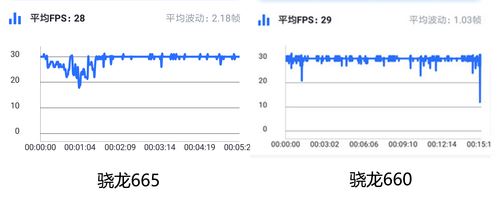 用時下熱門的《和平精英》進行測試我們也可以看到,游戲過程中驍龍665平均幀率28幀,幀率波動2.18.相比之下驍龍660的表現是平均幀率29幀,平均幀率波動1.03幀。實際的表現上依舊是驍龍660要好一些。不過從實際的體驗上,二者的實際感覺是差不多的。