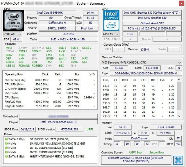 除此之外,相對(duì)于上一代只有一顆酷睿i9 8950HK能夠達(dá)到完整三級(jí)緩存容量,這一代的酷睿i9 9980HK和同家族的9880H均能夠達(dá)到16MB的完整緩存,這也算是一個(gè)不小的進(jìn)步。