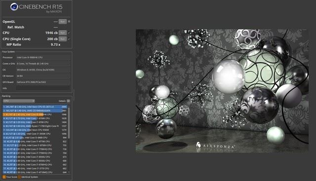 CINEBENCH R15是一直以來(lái)沿用下來(lái)的單核和多核測(cè)試軟件,所以整體的分?jǐn)?shù)收集更加全面,我挑選了一些較具代表性的處理器進(jìn)行了對(duì)比,可以看到酷睿i9 9980HK相對(duì)于上一代高端桌面級(jí)處理器酷睿i7 8700K來(lái)說(shuō),在多核性能方面也已經(jīng)明顯超越,其多核成績(jī)達(dá)到了1946cb,基本已經(jīng)與英特爾第九代酷睿i9 9900K多核性能持平(酷睿i9 9900K多核跑分:2040cb),性能非常強(qiáng)勁。并且已經(jīng)超越酷睿i7 9700K處理器的多核跑分(1502cb)。
