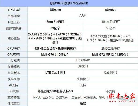 麒麟970和980有什么區(qū)別?