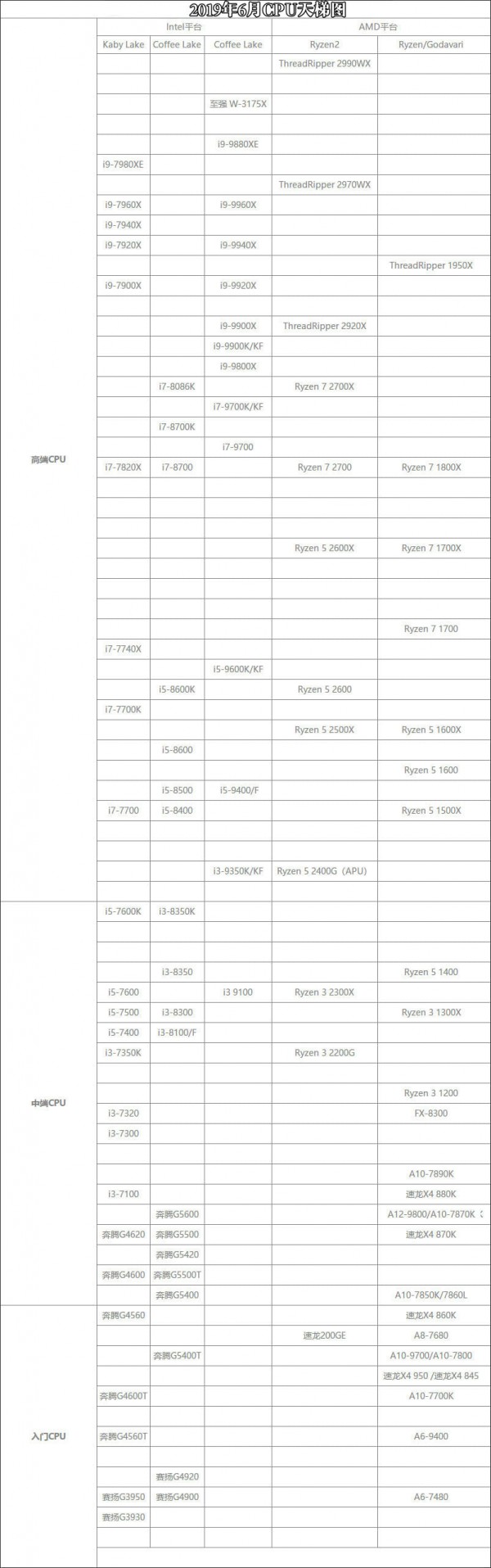 CPU一直是電腦硬件愛好者們關注的重點,一款CPU的性能如何直接決定了那個產品的定位和服務人群,天梯圖2019年6月最新版集合了19年6月前所有的CPU處理器,進行同等對比來列舉了這份詳細的2019年cpu性能排行天梯圖供大家瀏覽。