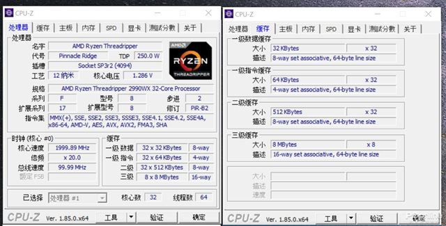 通過規格參數對比不難看出,TR-2990WX在幾個核心參數方面可謂是TR-2950X的一倍,如二級緩存,三級緩存,價格也是一倍,所以理論來說性能應該接近1倍的差距,否則就難對得住這樣一款發燒級處理器了。