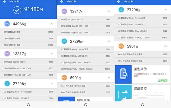 而以搭載驍龍三星Exynos7872的魅藍(lán)S6為例,其安兔兔綜合跑分在9萬分左右,如下圖所示。