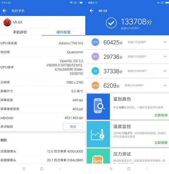 驍龍660代表機型:小米6X,安兔兔V7跑分如下: