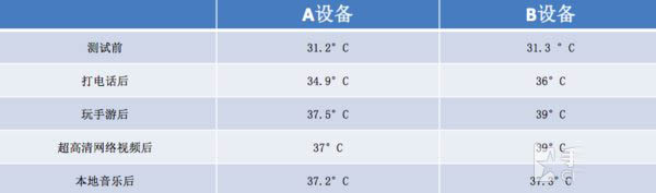 從圖表還可以看到,驍龍820機型在功耗方面控制得更好一點,測試總共消耗了810mAh電量,相比Helio X25設備耗費了844mAh電量。而且驍龍820機型的屏幕還要大一些。值得注意的是,在測試電量過程中我們也對各項目測試后的機身溫度情況進行了測量,發現Helio X25設備更容易發熱,特別是玩大型3D手游后,其溫度攀升到較燙手的39°C,相對比驍龍820設備仍很好的控制在良好的37°C。