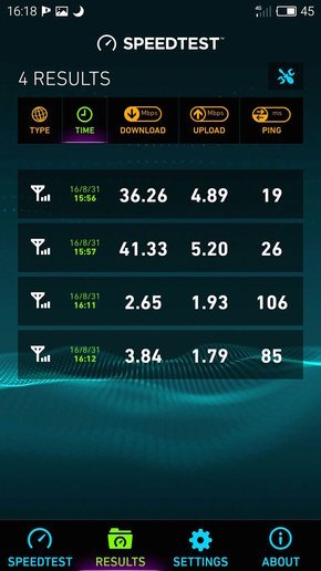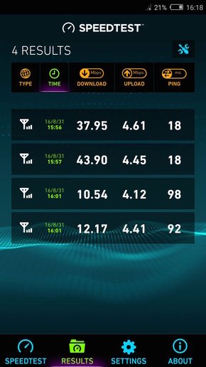 在移動4G網絡下(第一、二排數據),兩款設備在上傳和下載網速方面并未有明顯差別。但是在電信4G網絡下(第三、四排數據),我們發現驍龍820設備優勢比較明顯,下載速度是對手的3倍多,上傳是對手的2倍多。