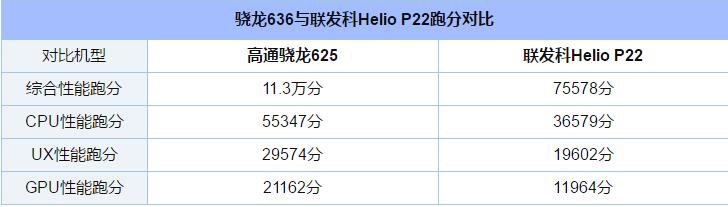 很顯然,聯發科P22不是高通驍龍636的對手。只能說聯發科Helio P22的CPU性能基本上可以和高通驍龍625持平。