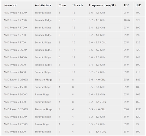 A:目前曝光的產品主要有兩款,分別是Ryzen 5 2500X和Ryzen 3 2300X.