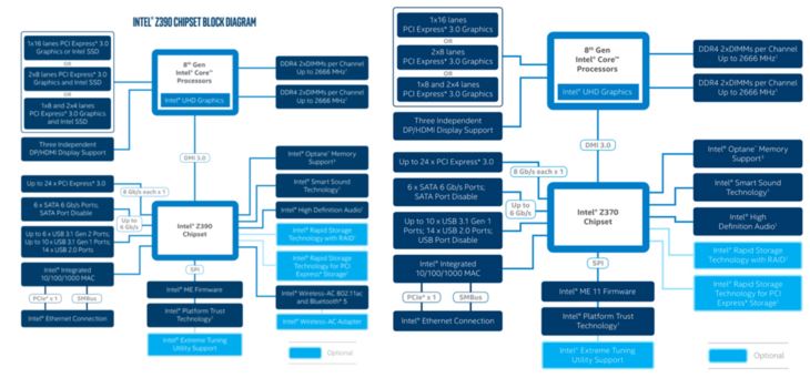 相比于 Z370 芯片組,Z390 在無線方面的規格更高,支持藍牙5.0和原生 USB 3.1 Gen2,在其他方面沒有改變,整體來看變化不大,Intel 也僅說明 Z390 芯片組對于不鎖頻的處理器有更好的支持。無論新款的處理器是否為8核心和主流級的規格定位,對于用戶來說,最希望的就是 Intel 不要再用硅脂了。
