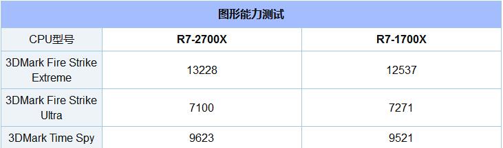 圖形性能測試部分,我們發現兩款產品在搭配的相同的顯卡后,性能表現不分勝負,綜合成績基本持平,也就是說CPU的性能差距對顯示性能的影響并不大,并且CPU性能較高的二代銳龍綜合圖形性能不一定比上代產品高。