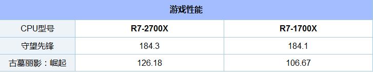 游戲測試方面,平臺性能的表現會根據不同的游戲而帶來不同變化,如上面對比的兩款游戲,在《守望先鋒》中的表現兩款處理器持平,而在《古墓麗影:崛起》的測試中,很顯然銳龍7-2700X占據一定優勢。