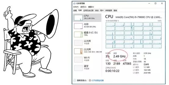 通常意義上我們把它認為是CPU的主頻,主頻越高,說明工人們干活越快,CPU的速度也就越快,一般我們能看到就是xxGHz這樣的顯示,數值越高,說明速度越快。