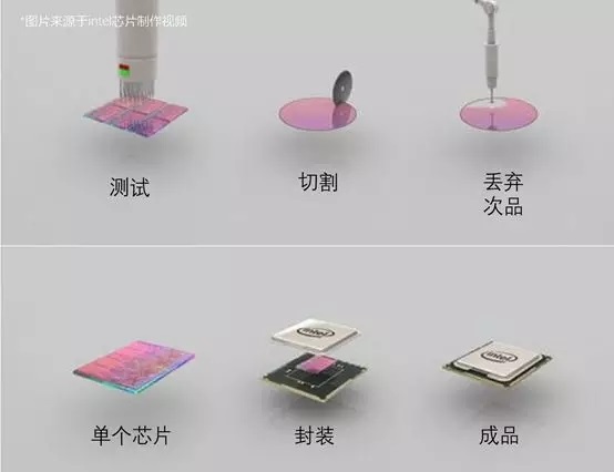 晶體管做完之后,后續還有一系列的測試,切割,封裝等工序,圓晶就變成了一塊塊芯片,我們的工廠也就建好啦。