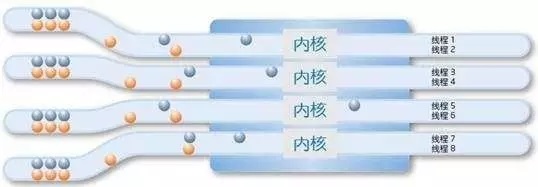 而超線程相當于一個核心對應了兩條隊列,兩條隊列上的包裹按工廠的處理能力依次進入廠房,道路寬了,也讓整個進程更有效率。