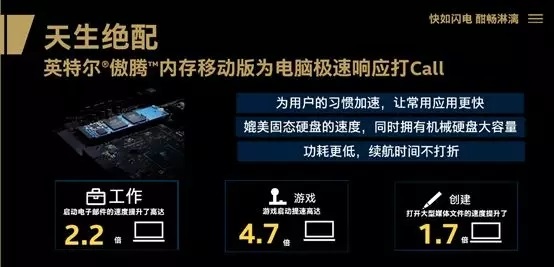 這個可選配的“傲騰”內存,這大大提高了用戶的峰值速度,也讓電腦在大任務面前,終于可以輕松起飛。