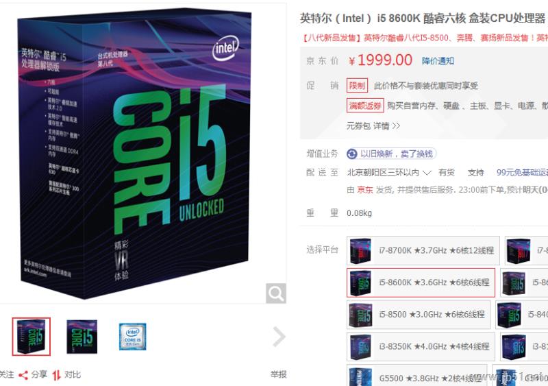 ②Intel酷睿i5-8600K價(jià)格