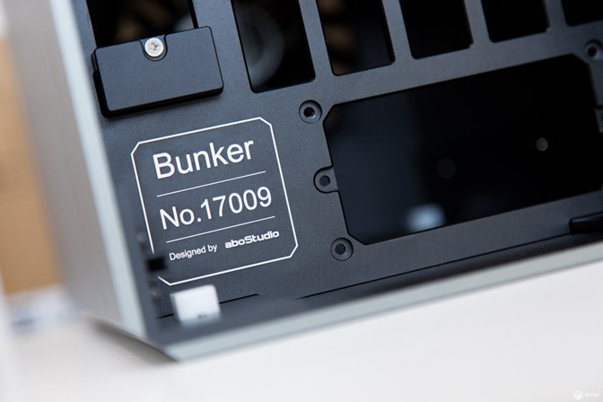 最后自然得介紹下這個激光鐳雕的銘牌了。每個 Bunker 機箱都有獨立的編號,我拿到的這個是 17009 號,該不會是 2017 年中制作的第九個吧?Bunker 的制作者同時也告訴我,如果愿意,也可以在機箱的其他地方雕刻上自己專屬的 Logo 標志,讓每個 Bunker 都變成獨一無二的機箱。