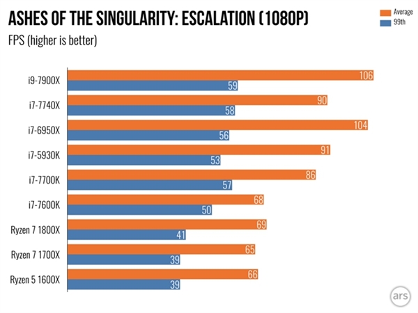 而再看奇點灰燼,規律更容易被發現,無論開啟DirectX 12與否,都可以看到對于多核心的挖掘是直到骨髓的,i9-7900X、i7-6950X是最占優勢的,領先i7-7700K、i7-7740X非常多。