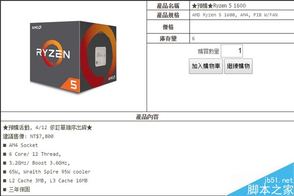 - Ryzen 5 1600(95W Wraith Spire散熱器):7800臺幣,約合人民幣1760元