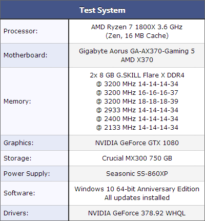 外媒TechPowerUp就此進(jìn)行了專(zhuān)門(mén)的深入測(cè)試,處理器采用旗艦型號(hào)Ryzen 7 1800X,內(nèi)存是號(hào)稱(chēng)專(zhuān)門(mén)優(yōu)化的芝奇Flare X,兩條8GB組成雙通道(條子真不錯(cuò)高頻也能做到CL14)。