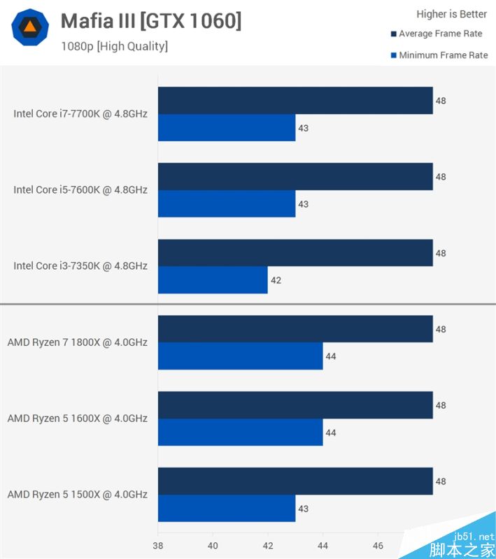 基于此,TechSpot做了模擬測試,也就是用Ryzen 7 1800X模擬6核和4核的Ryzen 5。其先決條件是,AM4主板在BIOS中悉數提供了屏蔽核心的選項,另外,從公平的角度看,1600X的緩存也是16MB,不過對1500X可能就沒那么準確了。