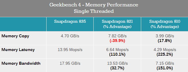 內存拷貝性能比驍龍821差不少,但是延遲、帶寬都有大幅度提升。