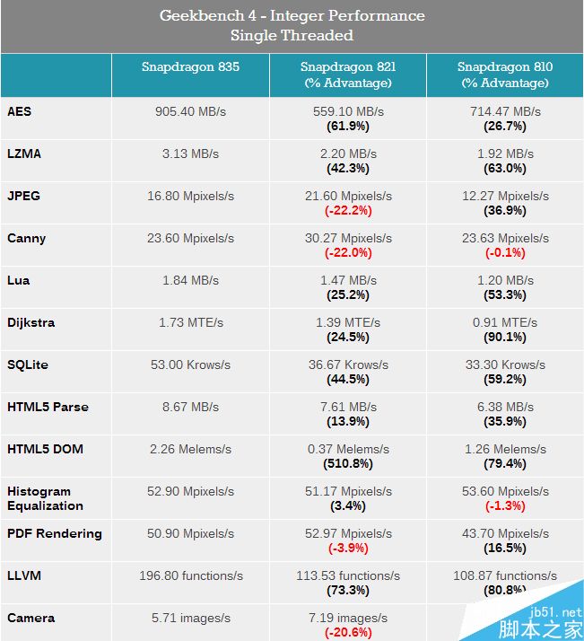 JPEG、Canny、Camera幾個項目有明顯倒退,A73核心的麒麟960也有類似表現,表明驍龍835核心的確基于ARM最新的IP。