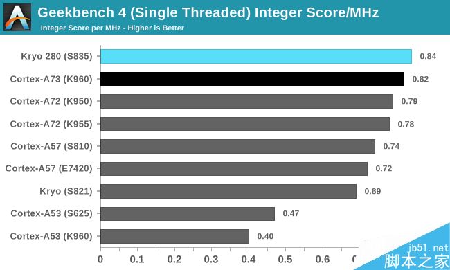 驍龍835的整數性能有了很大改進,挺意外的,畢竟這不是Kyro的強項。