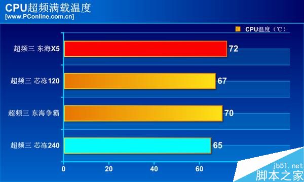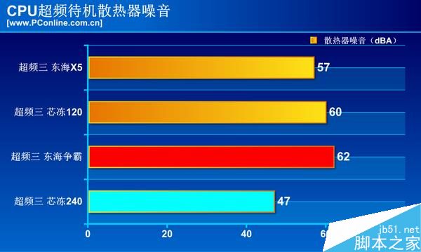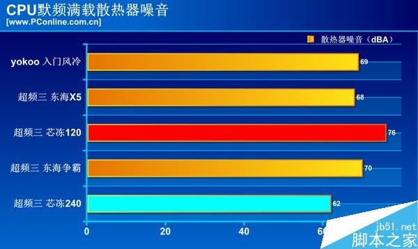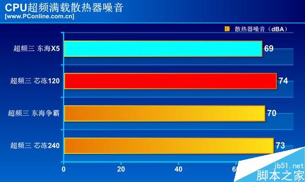 測試小結:在噪音控制方面,銳龍 AMD Ryzen7 1800X超頻后滿載狀態(tài)下的各價格段散熱器都顯得比較嘈吵,但四者差距并不明顯。