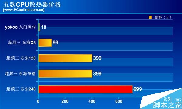 性能測試后,我們再回看一下價格。本次選取參測的散熱器區(qū)間從10元到699元不等,基本覆蓋目前散熱器產品的中高低端,而價格基本遵循一分錢一分貨的邏輯,性能最優(yōu)者為價格最高產品,最差的則是最為廉價的入門級風冷散熱器產品。