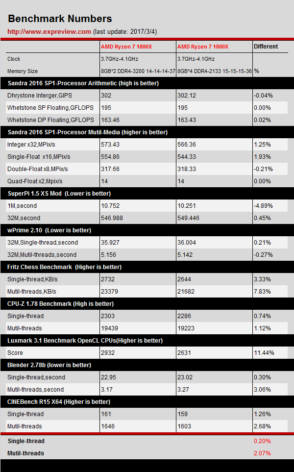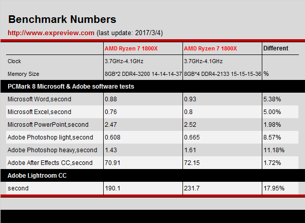銳龍 AMD Ryzen 7 1800X搭配DDR4-3200內(nèi)存測(cè)試結(jié)果: