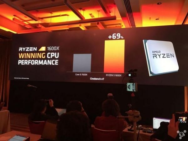 那這 Ryzen 5 處理器的性能如何呢?還是從 AMD 現(xiàn)場的 PPT 來看,在 Cinebench R15 nT 跑分中Ryzen 5 1600X 確實比英特爾 Core i5-7600k 性能強多了,分數(shù)超過了 69%。另一款 1600X ,AMD 沒有提供具體分數(shù)。AMD 高級副總裁 Jim Anderson 表示, Ryzen 5 將為中端 PC 市場提供“驚人的性能水平”,并具有與 Ryzen 7 系列相同的顛覆性價值。