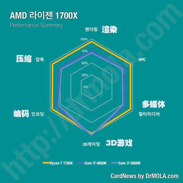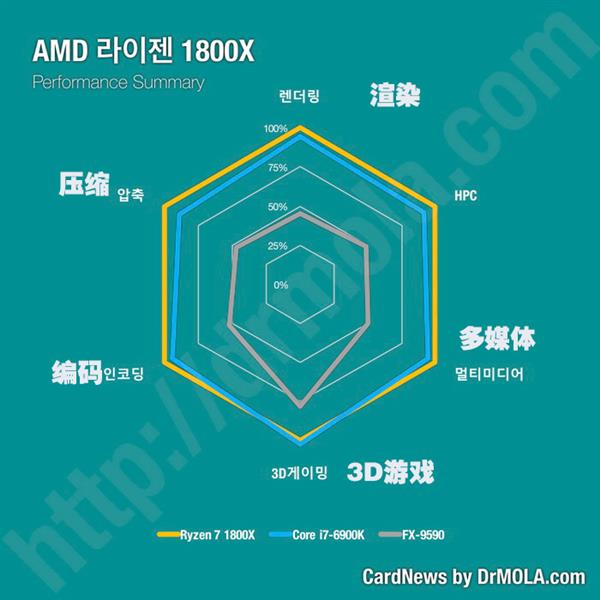 每家媒體的評測文章都是面向所有讀者群體的,有高中也有小白,普通玩家要想從從海量的測試數據中找到對自己最有幫助的內容不容易,這也是我們做評測的人該反思的。韓國DrMola網站的Ryzen處理器評測做的很不錯,他家的圖表做的很漂亮,而且非常直觀(就是語言障礙是個坎),值得學習。