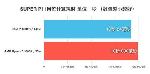 SUPER P1這也是一款老牌處理器測試軟件,國內玩家應該也比較熟悉了。直接上1M位計算耗時對比圖。