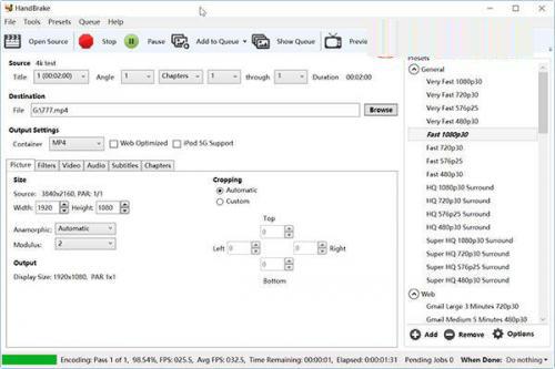 6、 HANDBRAKE 4K-1080p視頻轉碼測試