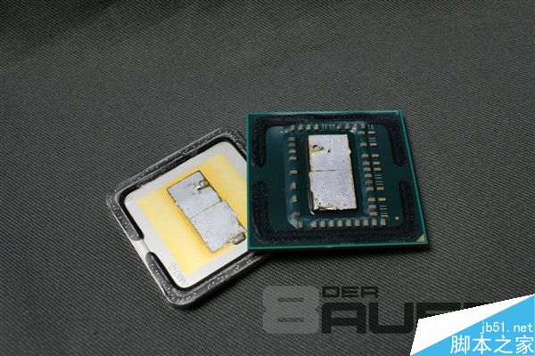 核心與頂蓋之間使用的依然是焊料類(solder)材質,具體來說是銦焊料(Indium solder),據說是一種很貴的導熱材質。